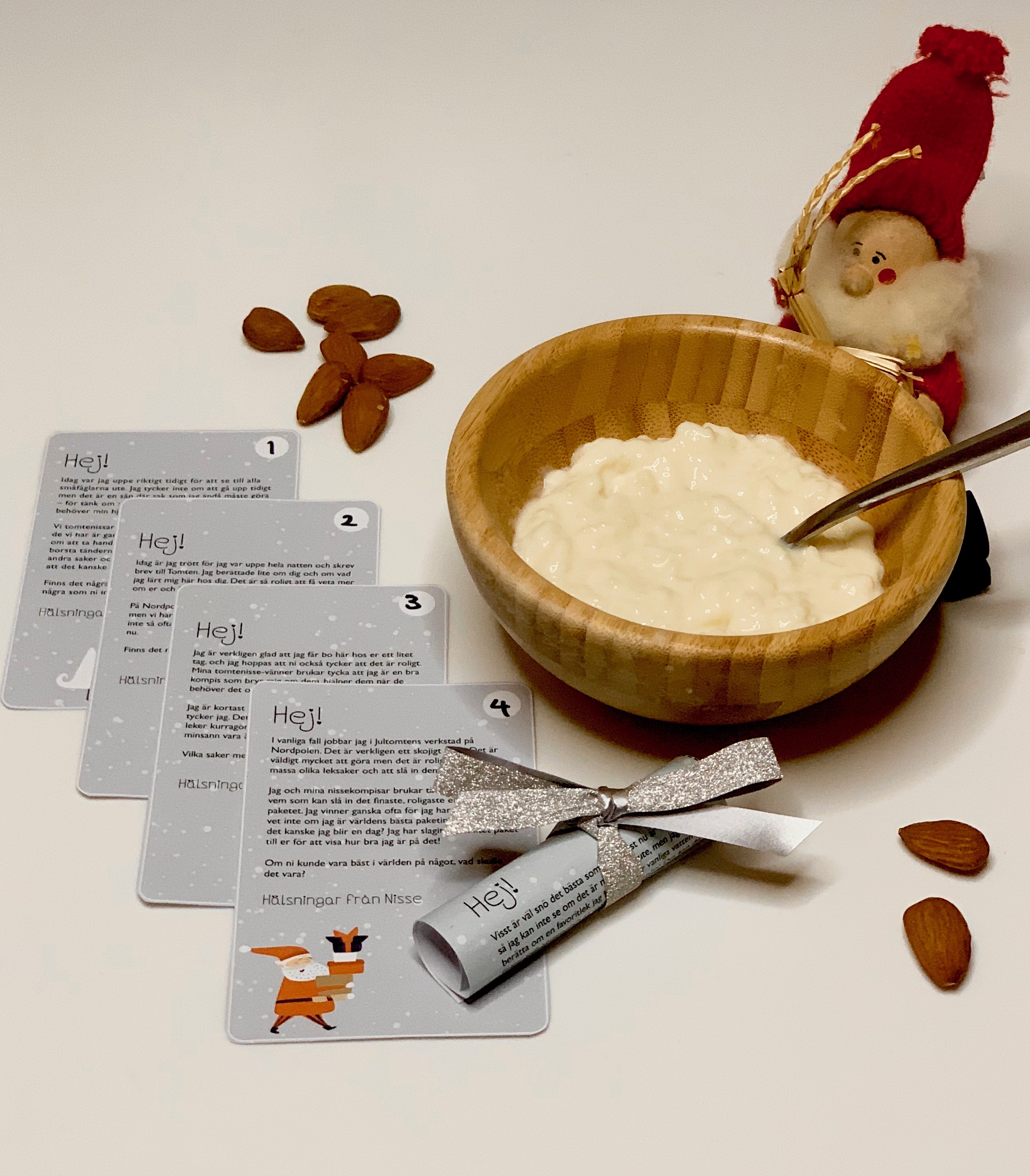 - Barnen öppnar kylskåpet på morgonen och ser att mjölkpaketet ser ut som tomten?! Måste ha varit Nisse som har busat!